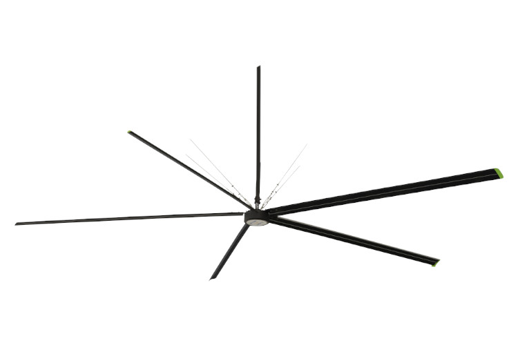 SP-HVLS Series are available in five sizes ranging from 12ft- 24ft equipped with PMSM motor. It is a perfect solution to ventilation & cooling in large places, such as factory workshop, warehouse, church, commercial buildings, supermarkets, library, lobbies, barn, etc. It brings gentle breeze at low rotational speed.